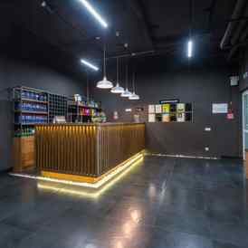 Большой выбор питательных смузи, протеиновых коктейлей, чай и кофе.